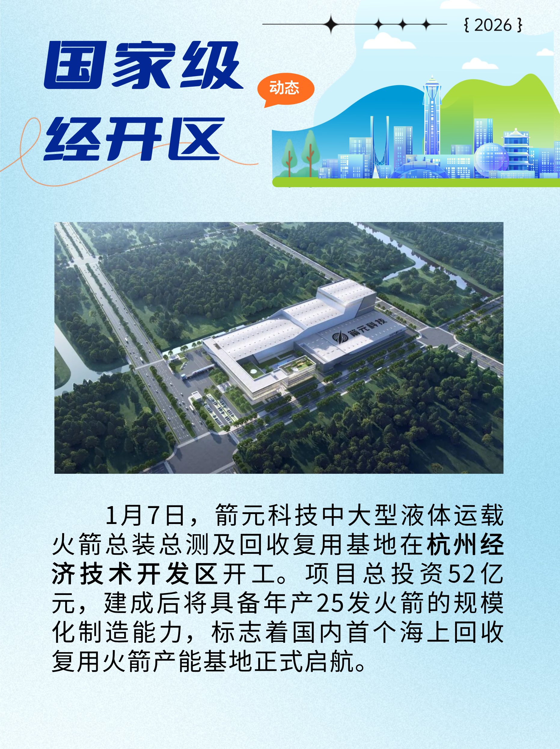 ①国内首个海上回收复用火箭基地在杭州经开区开工