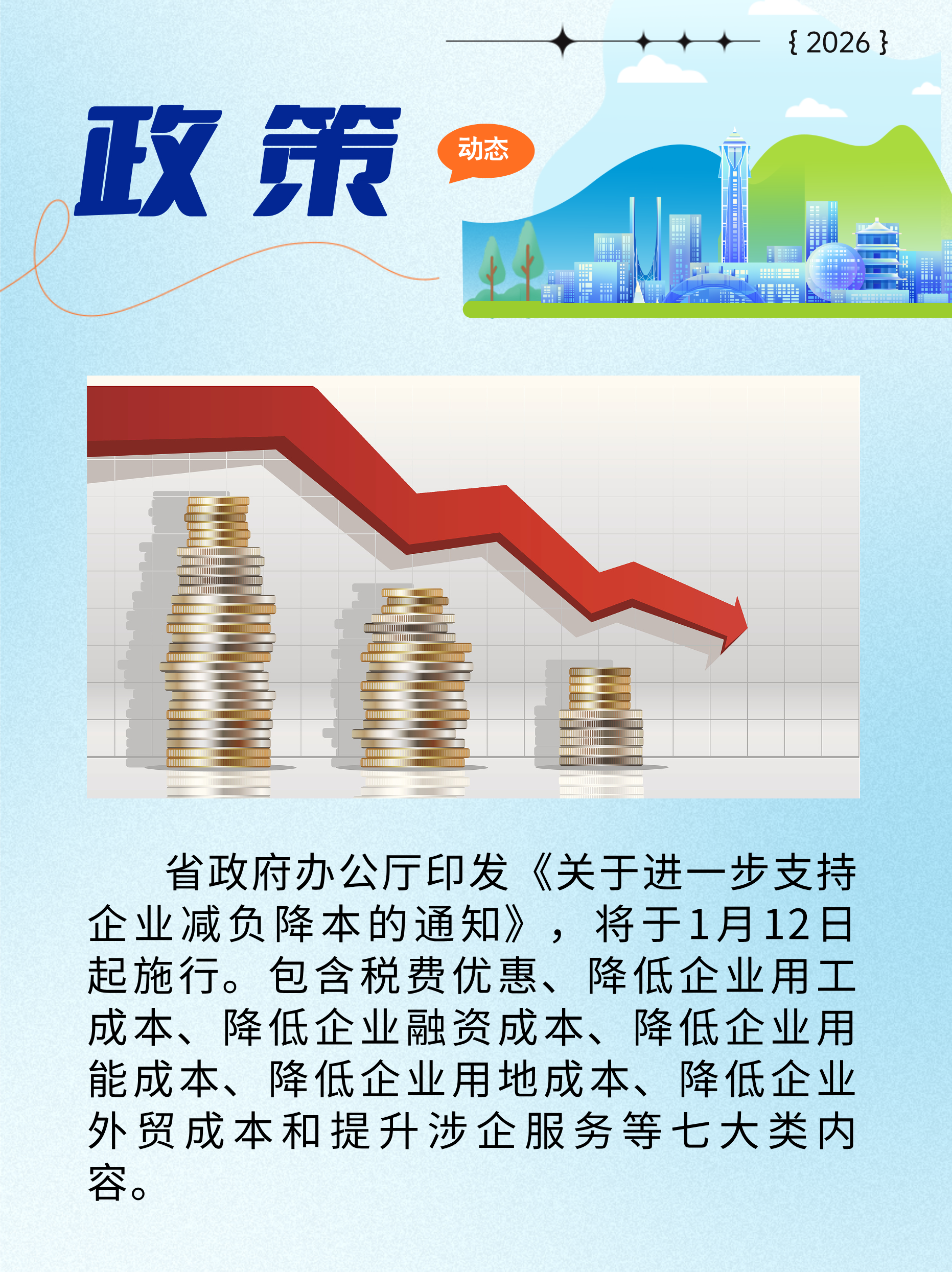 ①省政府办公厅印发《关于进一步支持企业减负降本的通知》